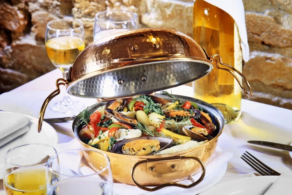 - Cataplana – A seafood stew cooked in a traditional copper pot.